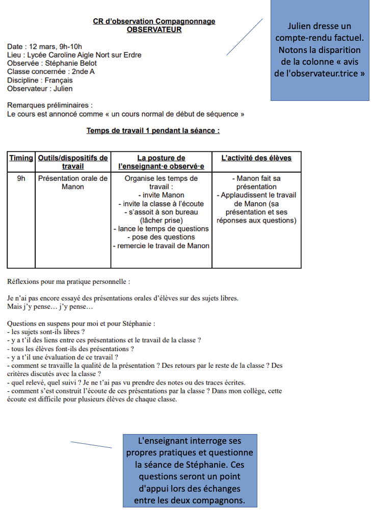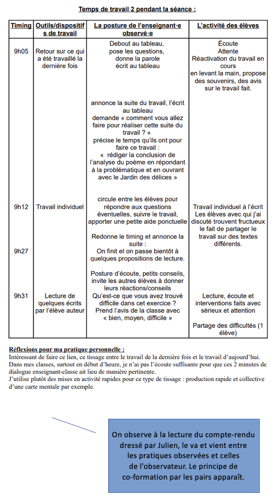 Ici, Julien partage son compte-rendu de l'observation de la séance en classe de seconde de Stéphanie :