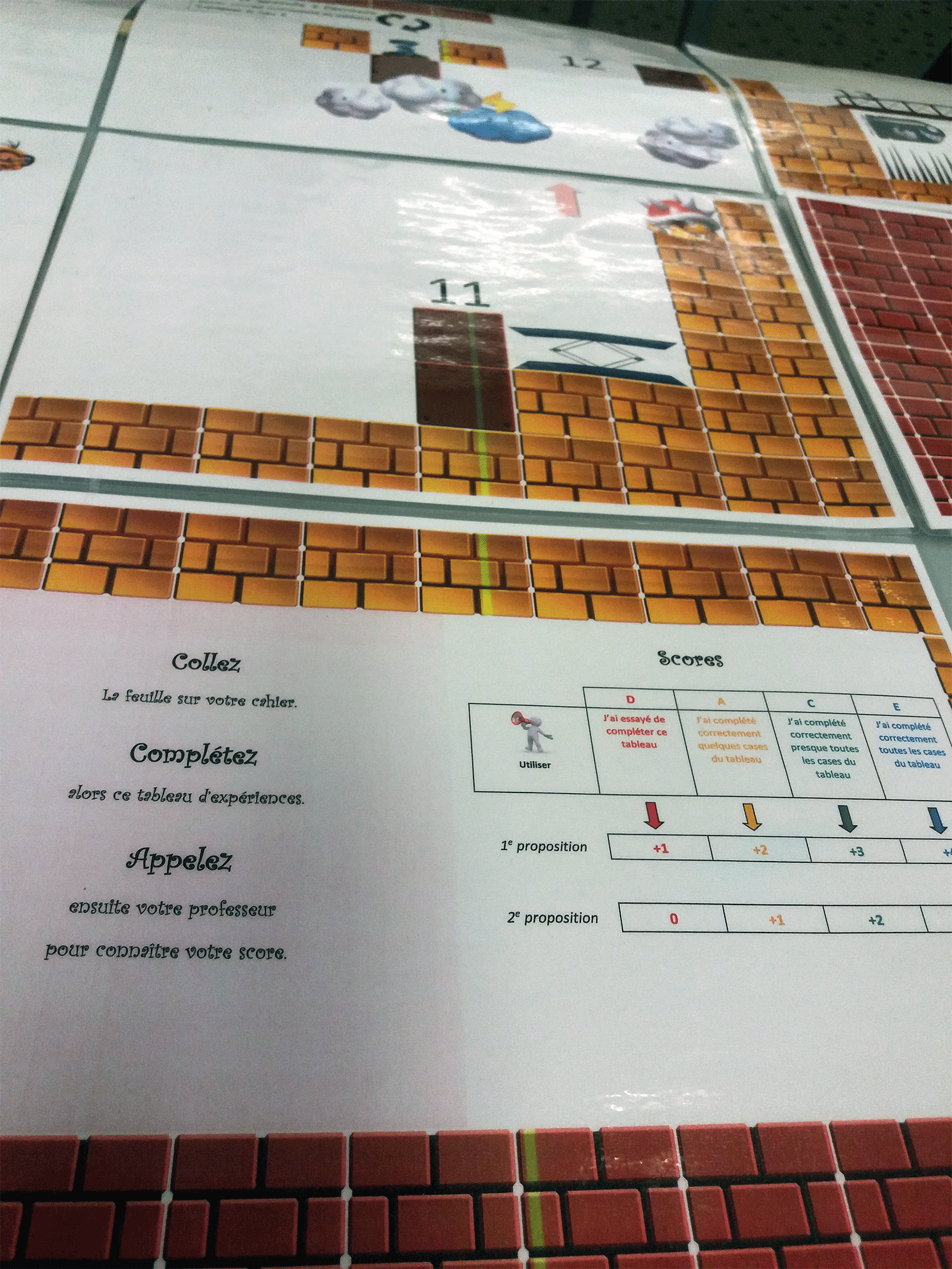 De plus, l'enseignant valide grâce à des échelles descriptives chaque étape du jeu pour que les équipes puissent continuer et faire avancer leur figurine Mario. Le professeur détermine si les élèves sont débutants, apprentis, confirmés ou experts. Il leur attribue alors des points ou leur en enlève. Les équipes en difficulté peuvent avoir un coup de pouce ou indice pour les aider dans leur réflexion. Les élèves doivent alors rappeler leur enseignant pour être validés ou non. À l'inverse, pour les équipes les plus avancées, des pièges sont placés sur le plateau afin de corser la difficulté. Les plus rapides peuvent aussi passer au Niveau 2 du jeu et prendre de l'avance.