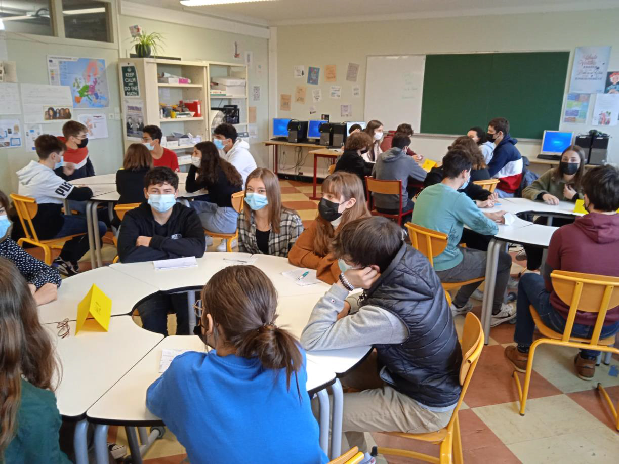 - disposition en îlots pour permettre de travailler en petits groupes de 4,5.
