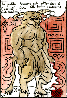 À chacun maintenant de concevoir ce livre ! Là encore, on commence par une phase de projet et de prévision de matériel. C'est ainsi que les idées les plus folles naissent avant de laisser place à des réalisations possibles. Feuilletons-en quelques ébauches à ce moment où la classe a encore une apparence de "malle aux trésors." Éléanor voit dans "son" carré un soleil. Il lui vient alors l'idée de réaliser un livre-planétarium. Elle dessine alors un système solaire, imagine de récupérer des photos de chaque planète, et réalise enfin le croquis de l'objet qui sera son livre. Eh ! oui, la création artistique emprunte quelquefois le chemin de la connaissance scientifique ! Pour d'autres, le maillage du carré reçu évoque la fable de La Fontaine, Le lion et le rat. C'est donc cette idée qui va présider à la réalisation du livre. Pour d'autres, tout va commencer par la réécriture d'une histoire au sens littéraire du terme. L'œil perplexe, une élève décide que l'œuvre reçue a l'air d'un "jardin en bazar." Elle va donc imaginer l'histoire de ce désordre. Pour l'enseignante, le moment est alors à l'écoute, à l'échange. Elle accueille les propositions, les plus insolites parfois, règle les débats d'interprétation. Guider vers le possible sans brimer, telle est la gageure.