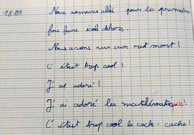 A. Chevrier a mis en place dans sa classe, un carnet personnel de l’élève, support d’expression. Il s’agit d’un outil précieux permettant un retour d’expérience, favorisant la posture réflexive des enfants et développant la maîtrise de la langue écrite.
