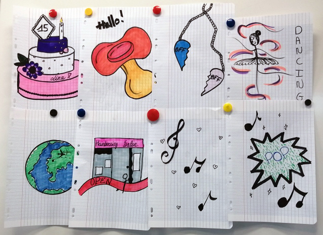 Ce choix pédagogique a été initié avec l’expérience d’une élève qui dessinait en classe : "Que fait-on d’un élève qui dessine ? On l’exclut ou on s’interroge sur la manière de mieux l’insérer dans les apprentissages ?" L’enseignante a donc eu l’idée de lui proposer la pratique du sketchnoting1 en lui donnant un défi. À la fin de l’heure, elle devait présenter ses dessins comme synthèse de cours au groupe classe : "C’était fabuleux. Je n’ai pas perdu l’élève, elle a suivi, elle s’est concentrée et cela a généré chez elle un sentiment de fierté. À un autre moment également, c’est une autre personne qui, pour se présenter en trois minutes devant le groupe en anglais, a préféré dessiner plutôt qu’écrire : Moi mon objectif c’était qu’elle parle. Après, les chemins qu’elle choisit, ça lui appartient."