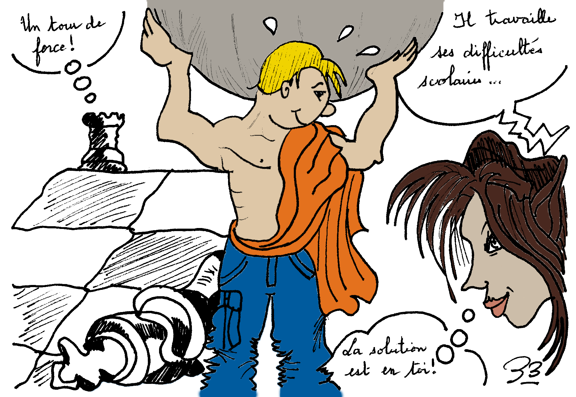 Dans chaque classe, quelques élèves inquiètent l'équipe éducative à cause de comportements insupportables pour le groupe, ou au contraire à cause d'une effarante passivité. Si l'on ne peut pas toujours concevoir la séance en fonction de ces élèves-là, on sait bien, néanmoins, que donner de la confiance et emprunter les chemins qui sont les leurs peuvent avoir un intérêt pour tous les élèves d'une classe si l'on conserve l'exigence d'un réel apprentissage. C'est en exploitant chaque année son bilan pédagogique que M. Nicosia répond à cette exigence. Il faut varier les activités le plus possible sans pour autant multiplier de façon démagogique les exercices simplistes. Bien sûr, on peut penser qu'il est plus aisé de mettre en place de tels dispositifs dans un groupe de huit que dans une classe de vingt-huit. C'est évident, les conditions ne sont pas les mêmes, mais il ne faut pas oublier que dans ce groupe de huit, sont réunis aussi bien des élèves en situation de blocage face à l'apprentissage que des élèves qui auraient pu en réalité relever d'un institut thérapeutique éducatif et pédagogique (ITEP). Le groupe est plus restreint, certes, mais il reste néanmoins un groupe très hétérogène. Le développement de la socialisation passe toujours et encore par des modalités d'apprentissage classiques, mais surtout par l'intégration du jeu dans de nombreuses séquences de travail. En 2009-2010, l'arrivée d'une nouvelle assistante d'éducation, Jessica Rodrigues, passionnée de jeux de rôles, a donné une nouvelle dimension, encore, à l'ensemble des dispositifs élaborés par Michaël Nicosia. Les élèves travailleront sur le thème de la mythologie celtique tant en littérature qu'en mathématiques, mais ils auront une autre tâche : s'approprier le jeu Les chevaliers de la Table ronde, afin de transmettre les règles aux nouveaux arrivants. L'intérêt de ce jeu de plateau réside, entre autres, dans le fait que les joueurs sont obligés de jouer ensemble, tous ensemble contre le jeu lui-même et que, pour avancer, on doit réussir à formuler le problème rencontré et dire aux autres ce dont on pense avoir besoin...