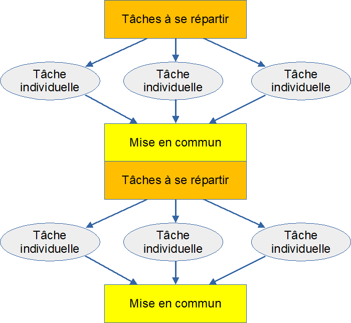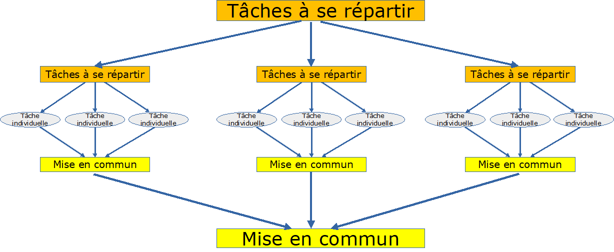 Le schéma permet de visualiser la répartition des tâches au sein des équipes et au sein de la classe.