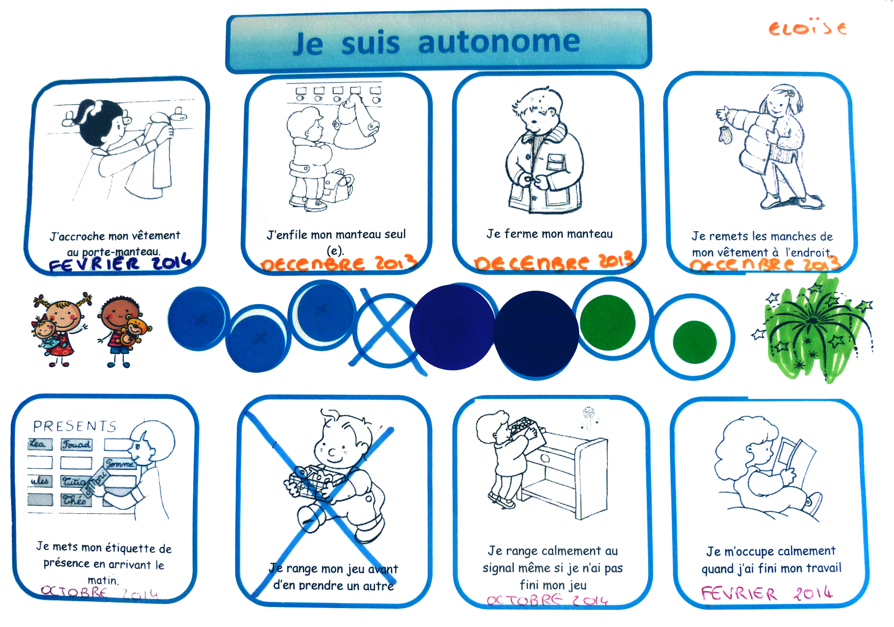 Il aura également fallu du temps pour répartir avec progressivité les compétences selon les niveaux et la singularité des élèves, pour trouver des pictogrammes, pour élaborer les chemins de progrès. Beaucoup de déjeuners se seront transformés en échanges constructifs. Mais maintenant que le projet s’est concrétisé, ce dispositif offre aux enseignants des temps de disponibilité pour observer les élèves au travail, et plus encore pour différencier par une aide directe auprès des élèves en difficulté.