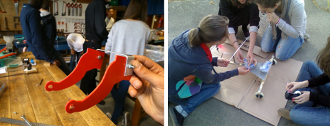 5. Chaque élève fait une tâche de nature différente dans le projet, mais cela relève du choix assumé de l'enseignant de ne pas mettre les élèves face aux mêmes situations problèmes. C’est une variante de la modalité 3, mais où chacun travaille en parallèle des autres, sans interaction, sans connaissance commune, etc. Sébastien refuse de faire cela en collège, lieu de l’apprentissage commun à chaque futur citoyen, mais le met explicitement en place en fin de 2ᵉ pour travailler l’orientation des élèves. Sur le dernier projet de l’année, pour être sûr que les élèves font le bon choix (filière générale ou technologique, mais aussi le choix de la spécialité dans les champs matière-énergie-information), il leur demande de choisir ce qui leur correspond le plus dans le triptyque, quitte à ce qu’ils abandonnent, après une séquence, la tâche jugée trop difficile ou bien pas à leur goût et réfléchissent ainsi à nouveau à leur orientation. Rien n’empêche les élèves de faire des rotations à chaque séquence (généralement un bloc de 2 séances pour ne pas surcharger ceux en peine, ni attendre trop longtemps pour faire le point, risque de perdre le projet de vue) pour continuer à se questionner sur leurs envies.