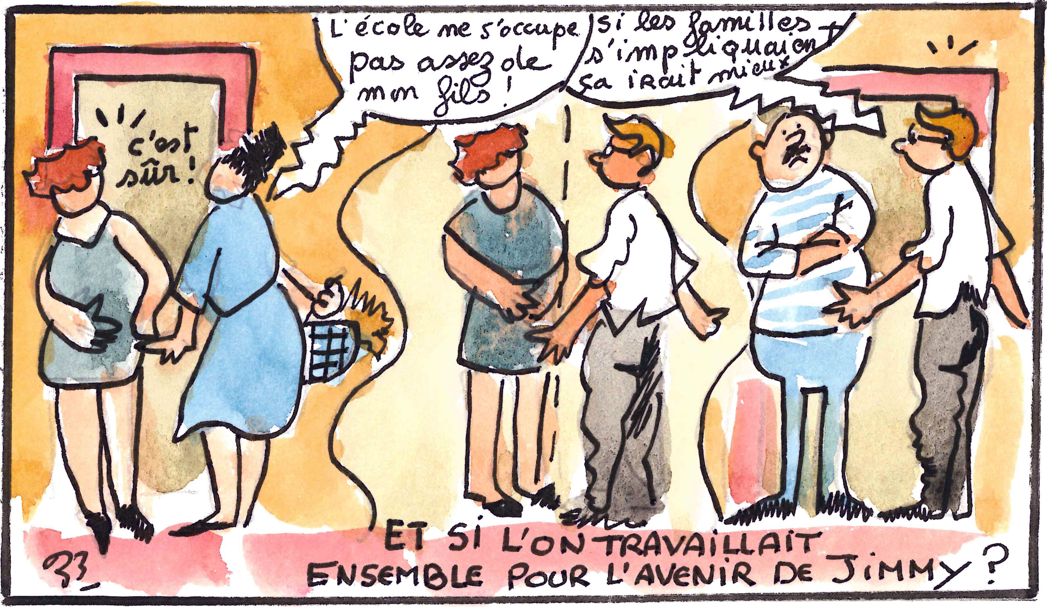 En éducation prioritaire, certaines familles ont des parcours de vie et parfois une histoire scolaire difficiles. Le cas de Jimmy analysé par Lucette Demouveau indique à quel point l'estime de soi peut manquer chez certains parents et certains élèves. Dès lors, aborder les parents en termes de manques risque d'alimenter ce sentiment d'échec et d'empêcher un peu plus la compréhension mutuelle. Pour sortir de ce cercle vicieux, les parents doivent être considérés comme des ressources. Autrement dit, l'école peut avoir des attentes vis à vis des parents, mais proportionnées et explicitées pour leur permettre de dépasser la dimension émotionnelle de la rencontre et éviter d'alimenter une culpabilité latente. A défaut, les parents comme les enseignants entrent dans une logique de procès réciproques d'autant plus virulents que la difficulté scolaire est installée.
