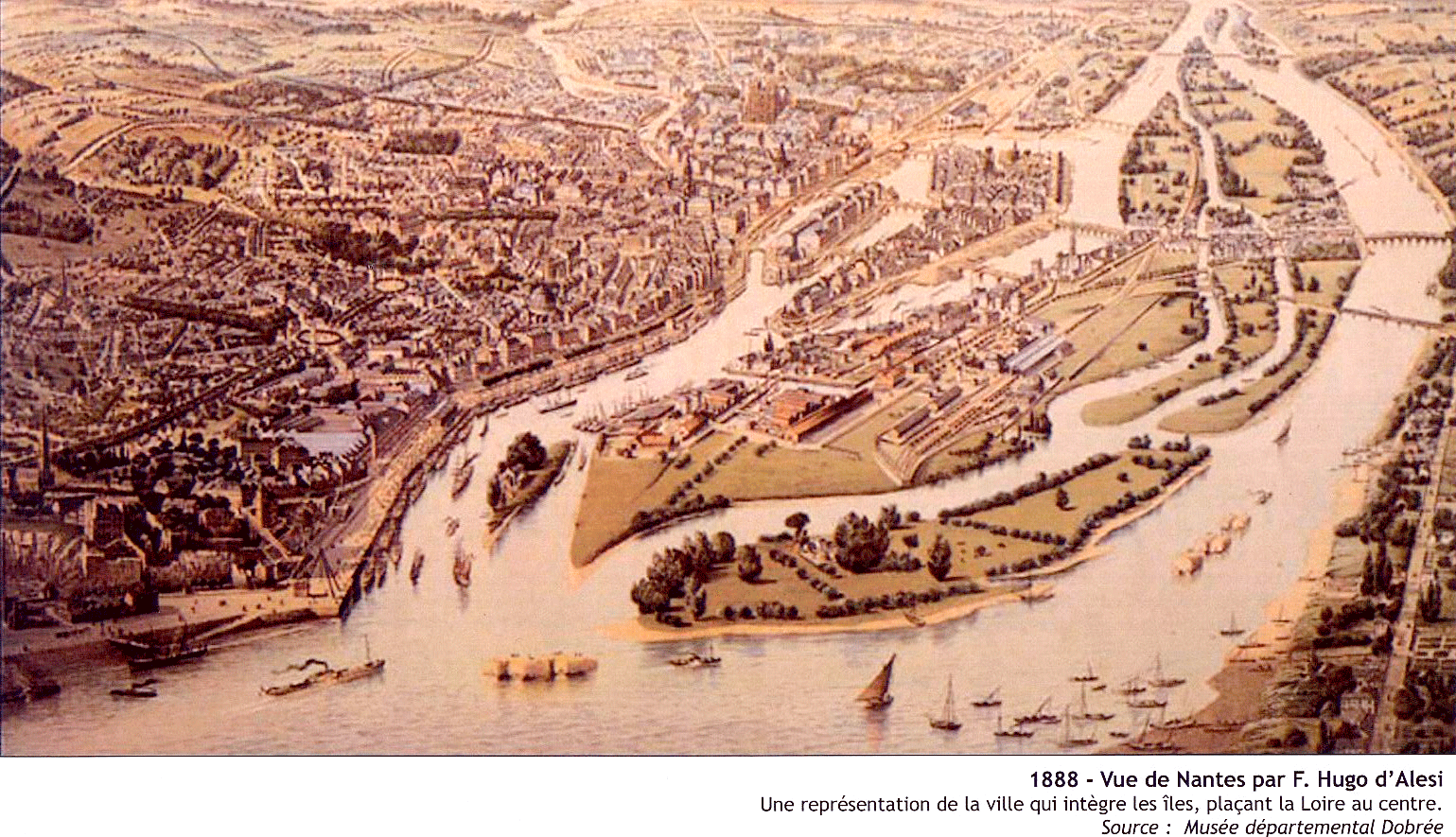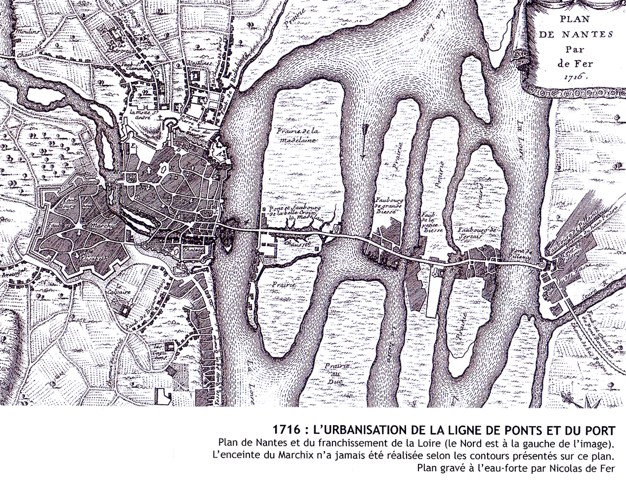 Les élèves se sont d'abord livrés à des recherches sur l'objet d'étude, soit le cœur historique de Nantes, en trouvant des cartes et des plans de la ville à différentes époques (voir ci-contre les vues de Nantes de 1716 et de 1888). Ils ont alors exploité les sites des archives municipales, départementales et du musée de l'histoire de Nantes sis au Château des ducs de Bretagne. La seconde séance a eu pour objet de reconstituer les étapes du développement urbain depuis la période gallo-romaine jusqu'à nos jours. Selon une perspective historique, les élèves se sont employés à distinguer les diverses strates de l'évolution urbaine, fondement même de la notion de patrimoine (voir annexe). Par groupes, ils ont repéré les monuments historiques encore existants et identifié les traces du passé laissées dans le paysage. L'étude a notamment porté sur la question du fleuve, des îles et des ponts. Ces préliminaires ont mis en œuvre les compétences liées à la lecture de plans et de cartes. Que sont devenus le pont transbordeur et le champ de Mars ? Pourquoi parle-t-on de l'"Île" Feydeau ? Qu'appelait-on le pont maudit ? Forts de ces réflexions préliminaires et de quelques repères géographiques, les lycéens n'avaient qu'une envie en tête, revêtir leur tenue d'explorateur et battre le pavé nantais, tout du moins le macadam, hormis dans certains quartiers historiques.