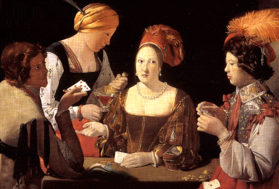 Retour à l'œuvre, à nouveau dévoilée aux élèves. Leur acuité est cette fois-ci plus grande, conscients qu'ils sont que la première fois, ils n'avaient pas vraiment regardé. Cette alternance entre l'observation et la confrontation de ce qui a été observé, une fois l'œuvre cachée, peut être multipliée. Il est capital que les deux soient distincts, sinon on fausse le jeu : c'est la condition sine qua non pour que les élèves comprennent réellement comment leur regard fonctionne. L'analyse se fonde sur la formulation d'hypothèses qui sont infirmées ou confirmées, soit par la discussion, soit, quand on n'arrive pas à se mettre d'accord, par un nouveau retour à l'œuvre. Prenons l'exemple du tricheur à l'as de carreau2. Si on parvient aisément à se mettre d'accord sur le nombre de personnages, l'identification sexuelle est déjà nettement plus problématique. Ne parlons pas des statuts socioprofessionnels, pour parler un langage complètement anachronique, des différents protagonistes. Il reste encore bien des zones d'ombre, d'autant plus obscures pour les élèves, qu'ils n'ont pas toujours conscience de leur existence. Quid de la lumière, du cadrage, des positions et regards qui racontent une histoire... L'enseignant n'en parle même pas. Il propose juste à ses élèves de passer à l'acte.