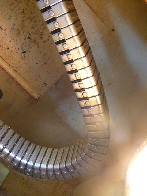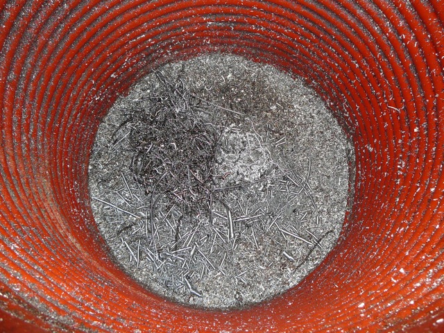 Au départ, un appareil photo suffit, car il s'agit tout simplement de commencer par prendre une photo d'un élément de l'atelier. Mais pas n'importe comment. Quel intérêt, en effet, y aurait-il à photographier une machine et à y ajouter en légende le nom et les caractéristiques ? Il ne s'agit nullement de produire une documentation technique. C'est le regard habituel sur ces machines qu'il faut modifier, transformer. La photo doit détourner la machine ou l'objet pour les transformer en supports de rêve et révéler tout un autre monde. Pour cela, il fallait évidemment jouer sur le cadrage, la lumière, l'angle de prise de vue. Toutes ces notions avaient été abordées précédemment en cours lors de séances sur l'analyse de l'image. La professeure leur avait présenté très concrètement la plongée en montant sur une table avec l'appareil pour prendre un objet et faire comprendre combien il était ainsi réduit, diminué au sens propre et figuré et elle s'était couchée par terre pour photographier un élève et lui faire comprendre qu'elle était littéralement "à ses pieds" et que lui était grandi et valorisé ! Chacun s'est donc mis à regarder son atelier avec un nouveau regard. Certains ont vite pris leur photo comme le montre ce fût de recyclage rouillé, rouge foncé, rempli de poussières métalliques luminescentes qui se transforme en image poétique (voir ci-contre). Pour d'autres, il a fallu plus de temps et s'y reprendre à plusieurs fois avec un peu d'aide, essayer le zoom, le contre-jour, isoler l'objet de son environnement connu... Une contrainte supplémentaire avait aussi été donnée : l'image ne devait pas comporter d'éléments humains, occasion de faire le point sur la législation et le droit à l'image. Quarante photos ont été prises, vingt ont été sélectionnées par l'enseignante et présentées à la classe. Chacun des seize élèves en a choisi une.