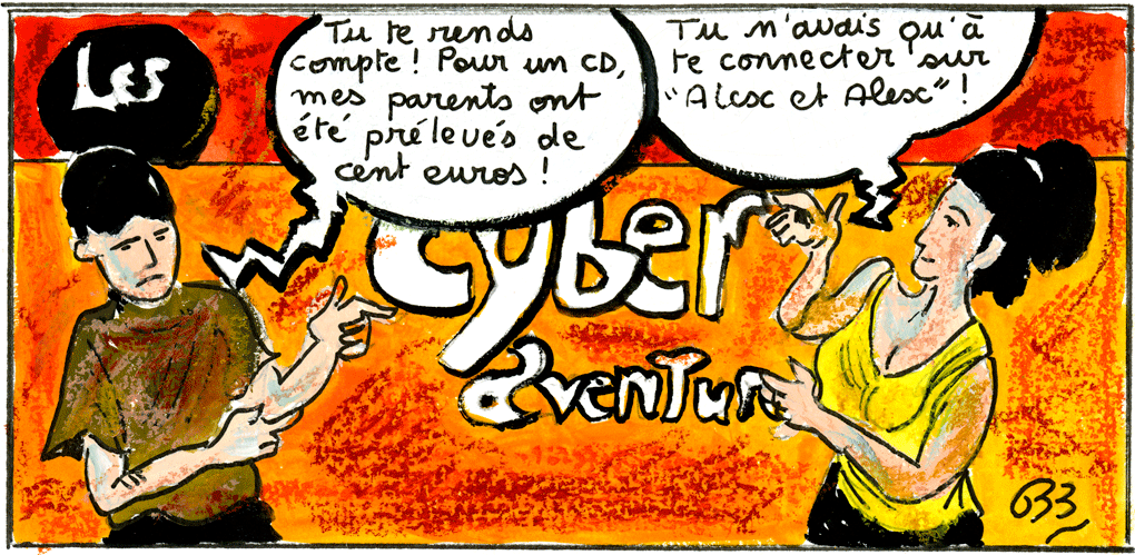 Parmi tous les sites concernés, nos deux héros choisissent celui ou ceux qu'ils ont envie de visiter. Ils peuvent par exemple choisir les sites Toutanmusik, CDRama et Tournée Rock Soleil, sur lesquels ils peuvent laisser en toute bonne foi des informations personnelles, acheter des CD sans sécurité de paiement, ou payer des entrées de spectacles sans avoir vérifié que le vendeur était fiable. Sur ces sites, ils doivent donc choisir ce qu'ils veulent faire. Les élèves échangent et confrontent leurs points de vue. Peu à peu, ils prennent conscience du degré de justesse et de pertinence de ces choix. Alexandre ou Alexandra leur expliquent enfin ce qu'il fallait faire pour se protéger sans limiter leur liberté de surfer. Si nos deux héros ont le besoin de parler de tout et de rien, internet leur offre diverses possibilités, telles que les chats, nombreux, et sur lesquels chacun pense s'exprimer en toute liberté et en tout anonymat. Par ce site canadien, ils découvrent que l'expression anonyme n'existe pas, dans la mesure où les quelques informations personnelles livrées sont autant d'indices facilitant l'identification de celui qui écrit ses messages. Par ailleurs, telle information recueillie sur un site se retrouvera sur un autre et formera ainsi tout un faisceau de données susceptibles d'être utilisées par des personnes malintentionnées. L'aspect inoffensif de ces sites, comme celui des sites d'aide aux devoirs, ne reflète pas la réalité des choses, tant aider l'autre sur internet consiste souvent à lui extorquer des informations ou de l'argent.