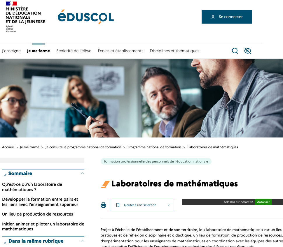 Vademecum Laboratoire de mathématiques - Documents éduscol | |