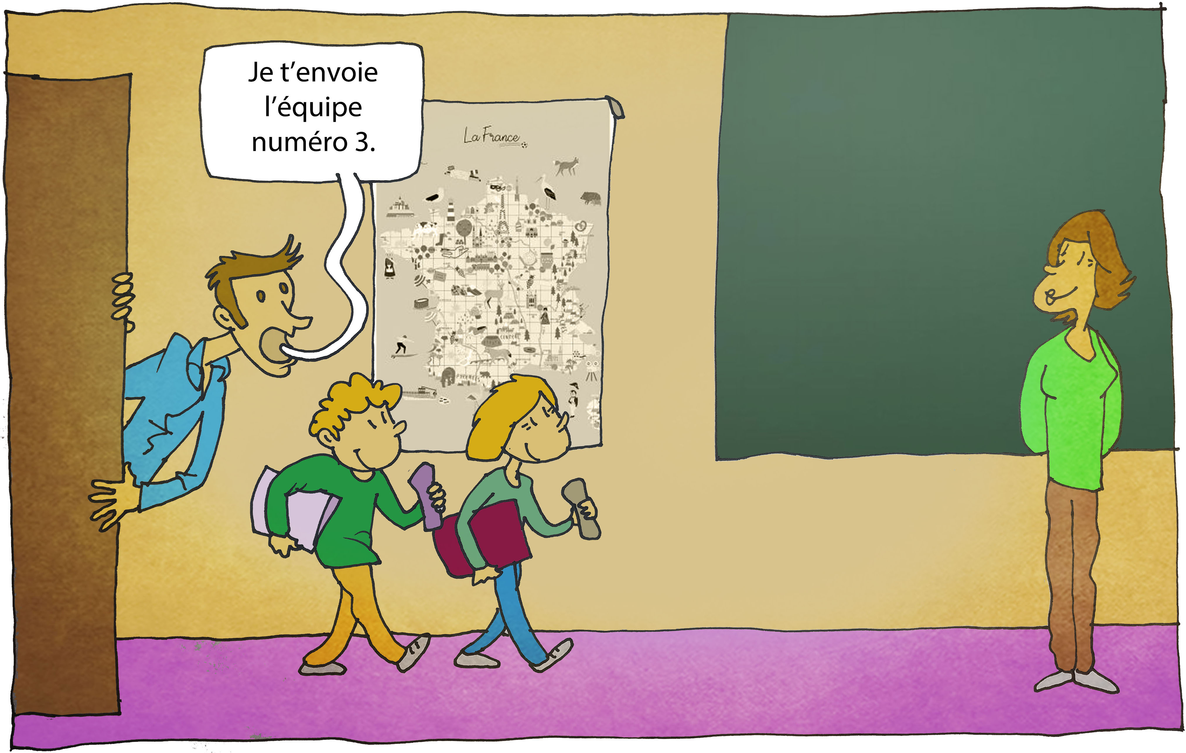 “C’est ensemble qu’on apprend”. Voilà pourquoi les deux enseignants ont choisi de pratiquer le co-enseignement de manière permanente. Plus qu’une classe “miroir”, il s’agit d’éclater l’espace clos des salles, pour répondre au mieux aux besoins des élèves. Ainsi, les deux enseignants ont à leur charge la totalité des enfants des cycles 2 et 3 selon un programme défini mais flexible.