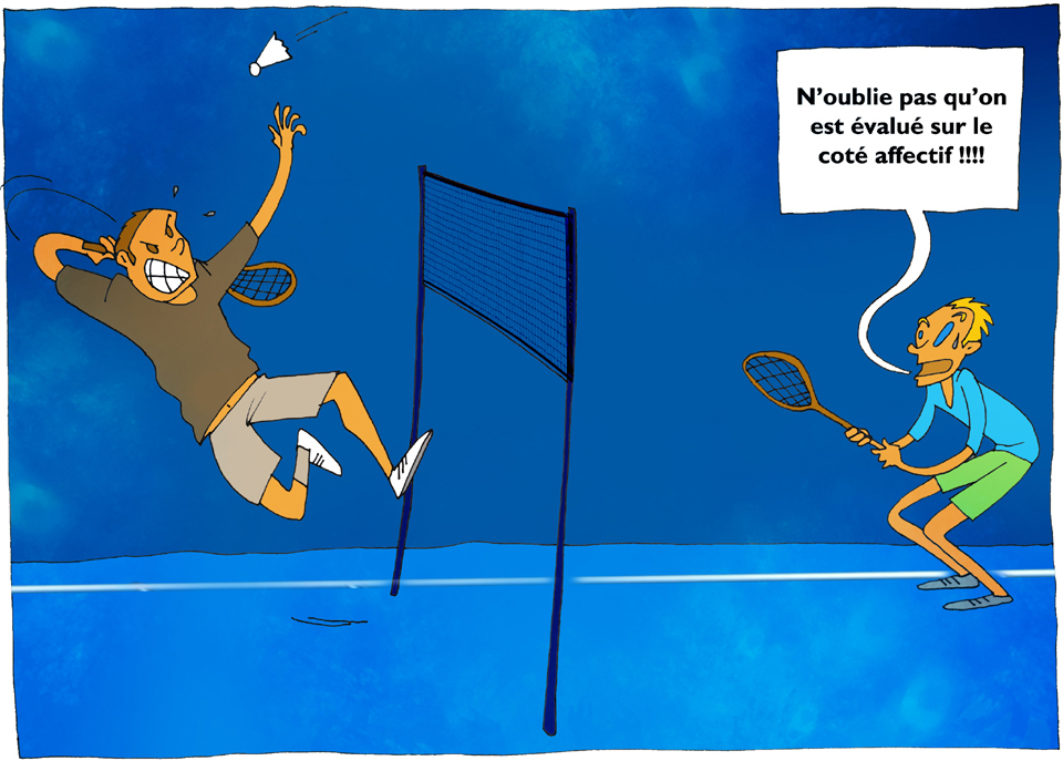 Pour initier et présenter le projet aux élèves, les deux enseignantes ont surtout évoqué l’argument du CCF en insistant sur le fait que le module de badminton représente des points faciles à obtenir qui peuvent parfois faire la différence et permettre aux élèves de décrocher le diplôme du CAP. De ce fait, une plus grande confiance et une meilleure estime de soi pourraient être les clés pour leur permettre de progresser et obtenir des résultats supérieurs tout en apprenant à mieux se connaître et à être mieux dans sa peau. "Nous avons invoqué l’argument du CCF pour donner aux élèves l’envie de progresser, même si pour nous professeures il ne s’agissait pas de l’objectif principal. Nous visions bien entendu le développement des compétences psychosociales", précise Florence Frémaux. Dans la perspective de réussir ce fameux CCF, les élèves ont reçu lors de la première séance une grille d’auto-évaluation articulée autour des trois pôles d’apprentissage (moteur, cognitif et affectif). Les élèves ont listé les compétences propres aux trois pôles et ils se sont auto-évalués. À chaque séance, ils remplissaient cette grille, véritable journal de bord leur permettant de constater leurs évolutions jusqu’à la séance certificative du CCF.
