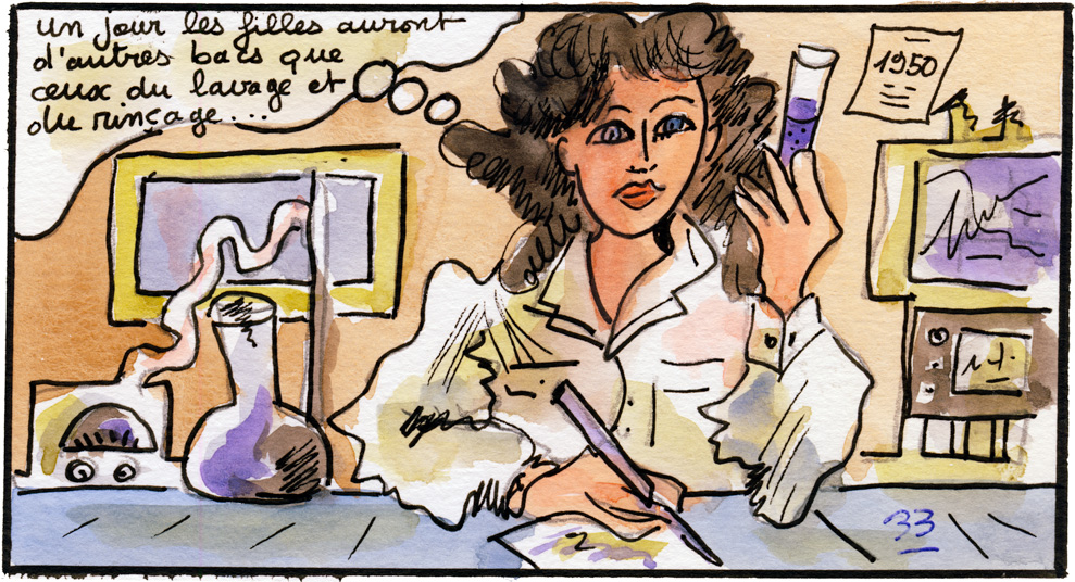 Au terme de ce projet riche en réflexions et investigations transversales, les orientations choisies par les filles à la fin de la troisième sont nettement plus tournées vers les sciences que les années précédentes : Manon, Julie, Céline, Marine… ont osé franchir le pas vers les enseignements d’exploration : biotechnologies, SI (Sciences de l’ingénieur), MPS (Méthodes et pratiques scientifiques), SL (Sciences et laboratoire), pour l’an prochain. “Je pense qu’on a semé plein de petites graines, qu’on a fait réfléchir les jeunes, avec, pour certains, un effet immédiat dans leur conscience ; pour d’autres, un effet ultérieur.” Espérons que ces petites pousses prometteuses d’avenir sauront, à leur tour, faire basculer les préjugés ancestraux… Après ce premier essai réussi, les équipes souhaitent bien évidemment étayer le projet, sur une autre forme, peut-être plus artistique cette fois, de façon à générer d’autres liens interdisciplinaires : la place des femmes (et des hommes) dans la publicité et au cinéma ? Valérie Gérard (Conseiller principal d’éducation), et Anne Boisteux, coréférentes “Égalité femmes-hommes” pour le lycée Mounier, souhaitent pérenniser cette réflexion collective. Au collège, c’est le regard porté sur les garçons qui sera en ligne de mire à la rentrée : des sanctions différentes sont-elles attribuées aux garçons et aux jeunes filles ? Leur attribue-t-on plus la parole dans les matières scientifiques ? Autant d’obstacles inconscients à soustraire, autant de particules à souffler sous l’œil du microscope “Pour lutter contre les stéréotypes et avancer sur le chemin de l’égalité” (Amélie Alméras).