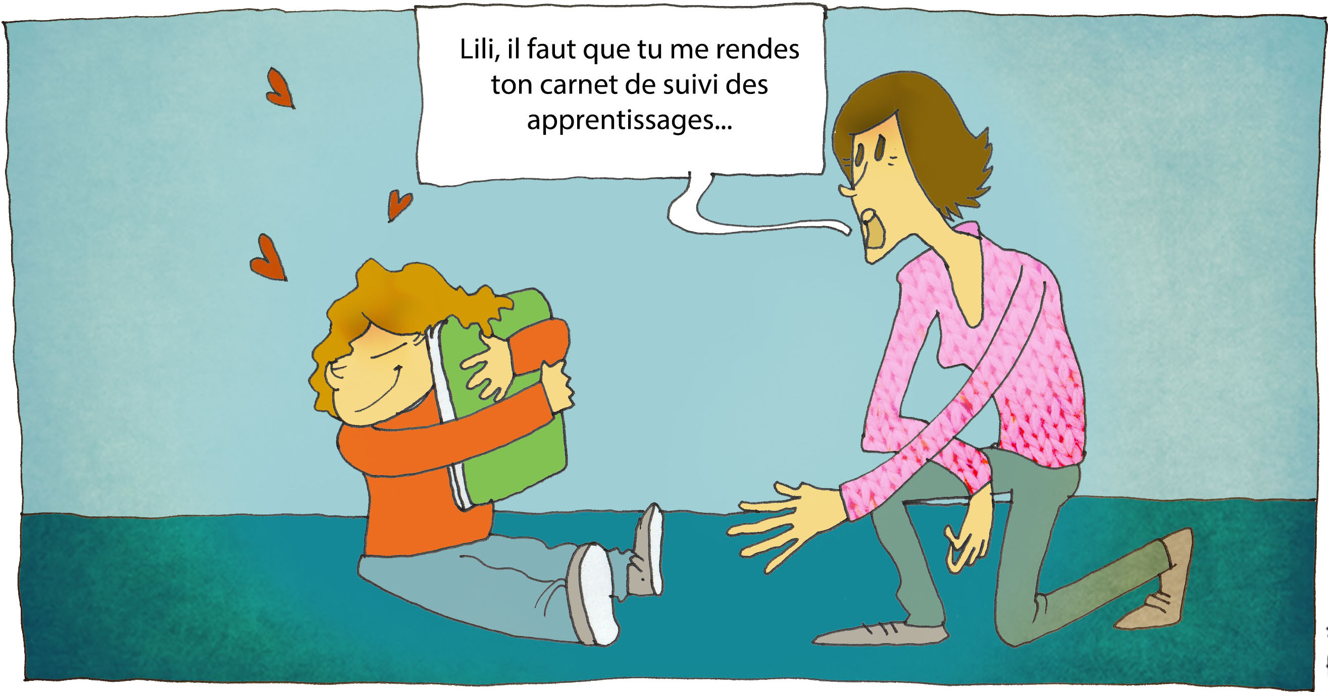 Si toutefois au cours de l’année, l’enfant ne parvenait pas à acquérir un niveau satisfaisant sur certaines compétences, les vignettes ne seront pas collées lors de l’année suivante. Les enseignantes ont en effet préféré laisser des blancs : "En feuilletant le carnet, les manqués permettent aussi à l’enfant de revenir dessus et de verbaliser : 'je ne savais pas faire ça l’année dernière, maintenant je sais'", précise Isabelle Vidot. Enfin, notons que pour les enfants en grandes difficultés, les enseignantes ont prévu un niveau minimum de la compétence afin qu’il y ait toujours des vignettes à coller dans le carnet. Autrement dit, l’enfant comprend qu’il est toujours compétent, mais dans un niveau de complexité ou de difficulté différent. Aux yeux de l’équipe enseignante, le caractère positif et bienveillant du carnet est tout à fait fondamental. Pour avoir confiance en lui, l’enfant doit sentir qu’il est mis en valeur. Il doit être fier de ce qu’il accomplit. Pour autant, le Carnet de suivi des apprentissages n’est pas qu’un faire-valoir car il permet aussi de signaler les difficultés de l’enfant via les commentaires que laisseront les enseignantes.