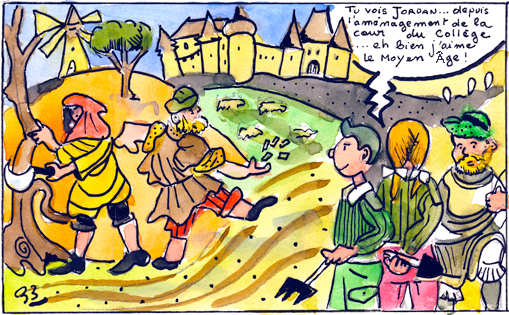 Deux ans plus tôt… Dans le cadre du cours de géographie, un échange épistolaire entre "élèves des villes et élèves des champs" 4, tous sarthois, avait débouché sur une rencontre lors d’une sortie scolaire à la campagne. Ce jour-là, les enseignants ont observé avec surprise la difficile appréhension de l’espace de la part de leurs élèves habitués au milieu urbain. Ils ont réalisé que les collégiens n’avaient jamais eu de contact réel avec la terre, la plupart d’entre eux résidant en appartement, et entretenaient un rapport d’étrangeté vis-à-vis de la nature et de l’espace naturel en général. "C’est ainsi qu’est née l’idée de les amener à s’approprier les espaces verts du collège, en les réaménageant", explique S. Coué, professeur de SVT (sciences de la vie et de la Terre). À la rentrée suivante, le projet était prêt, et les classes se sont lancées dans la création d’un jardin médiéval, stimulées par leur participation au Trophée du développement durable, concours organisé par le conseil général de la Sarthe. Au début, pour beaucoup, il n’était pas question de toucher la terre ou les plantes sans gants de jardinage… Au fil des mois, grâce aux apprentissages et aux activités conduites par les professeurs, grâce aux interventions de techniciens du conseil général, le plaisir a trouvé sa place. Les élèves ont construit cette année-là un nouveau rapport à la nature. Ils ont appris à l’observer, à la respecter. Et ils sont sortis lauréats du concours. L’aventure était lancée. Les collégiens ont souhaité la voir perdurer.