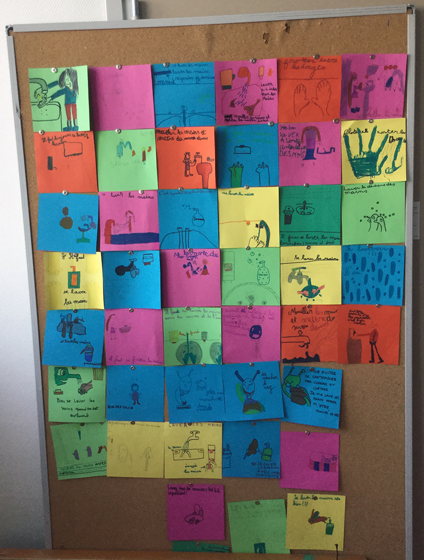 Dans le cadre des TAP a également été organisé un concours d’affiches sur le don du sang. Au-delà d’une campagne de sensibilisation aux dons, ce projet présente l’intérêt de mettre en avant la générosité et l’entraide. D’autres contenus ont été proposés, comme par exemple une réflexion collective autour de pictogrammes qui trouveront ensuite leur place au-dessus des lavabos de l’école.