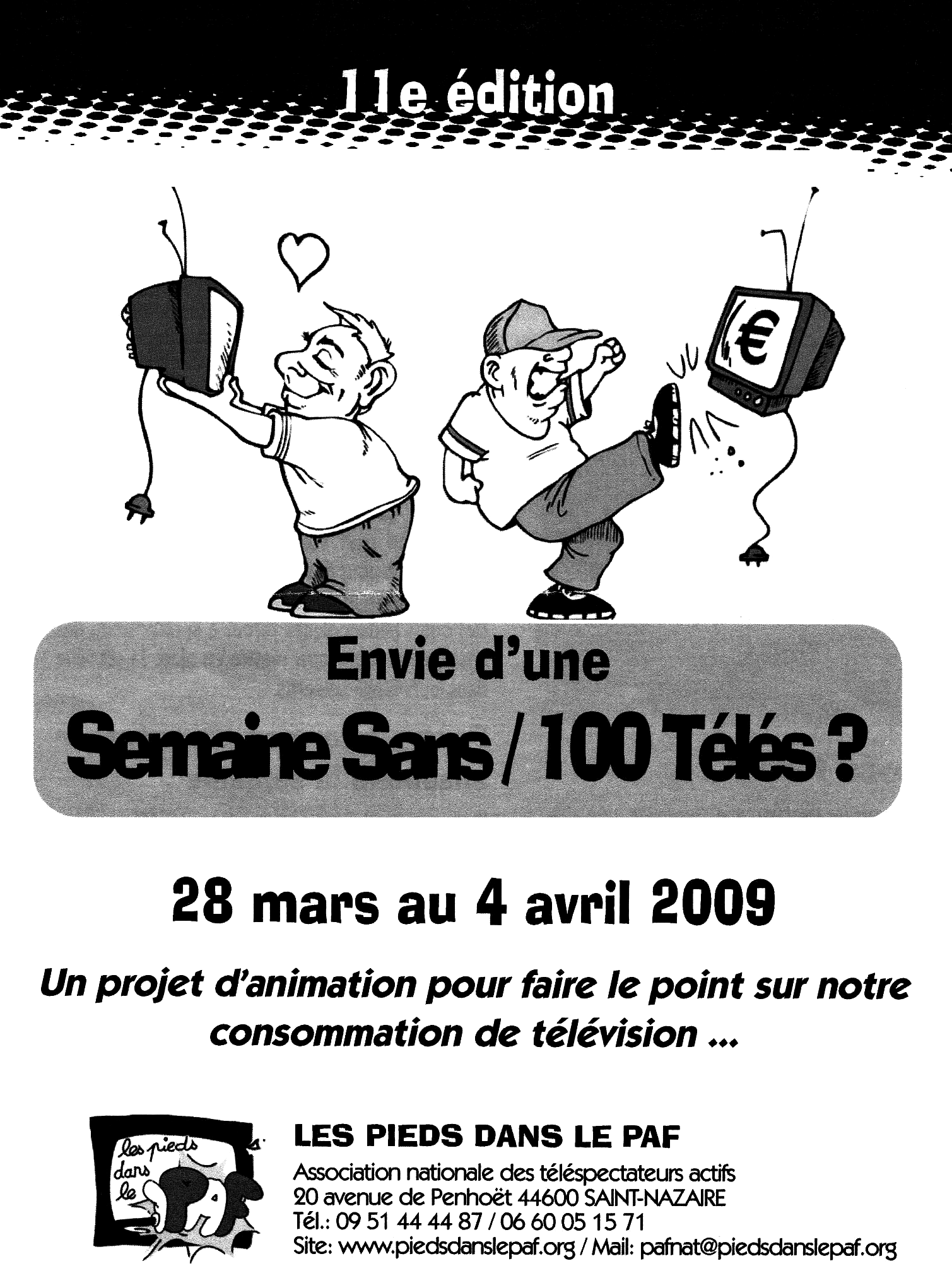 En 2008-2009, l'action s'est poursuivie sous l'appellation Sommeil, écrans et activités physiques, en élargissant de la télévision seule à tous les écrans, internet, jeux vidéos, etc. et en réalisant de même un sondage auprès des élèves (voir annexe). Cette fois, c'est Michèle Mérrit du CLEMI qui est venue animer un atelier dédié aux dessins animés visionnés avec ou sans son, selon le même principe que précédemment. Puis les parents ont été invités à participer à un débat consacré aux jeux vidéo. Comme ils avaient été sensibilisés aux effets de l'image par leurs enfants, le débat fut riche et fécond. Ils se sont montrés soucieux de la fiabilité des limites d'âge annoncées par les fabricants. Les parents des élèves de cycle 3 ont reconnu que les jeux vidéo avaient supplanté la télévision. Puis, en collaboration avec Les pieds dans le Paf, un grand défi a été lancé : la semaine Sans/100 télés (voir annexe).