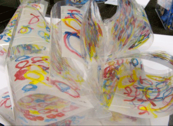 Le thème de l'eau est tout aussi connu des élèves de grande section de l'école Chateaubriand de Saint-Nazaire que celui de la table l'était des élèves baulois... ou tout au moins, le croyaient-ils ! Car pour leur enseignante, l'objectif principal de cette séquence est plus lié à l'art qu'aux sciences naturelles. Grâce à une approche sensorielle, le but est de créer un lien entre différents modes d'expression (musicale, corporelle, visuelle et littéraire) et différentes époques (le XIXe et le XXe). À partir d'une écoute répétée plusieurs fois des quatorze brefs épisodes du Carnaval des animaux de Saint-Saëns, puis plus particulièrement d'Aquarium, mais également de La truite de Schubert et de quelques chansons de la mer extraites du livre-cd Au fil des flots, l'enseignante a proposé toute une série d'activités. Mime d'animaux, expression corporelle sur la musique d'Aquarium, jeu de mémory, de 7 familles... Puis les élèves ont observé des photos de la mer, de vagues, de reflets, de fontaines, de poissons, de carnaval, avant de découvrir quelques œuvres d'art. Ces dernières étaient signées Monet, Signac, Kandinsky ou Matisse, pour les peintures, Escher ou Calder pour la gravure ou la sculpture. Toutes avaient un lien avec le thème. Des albums, des documentaires, des poésies (Poisson de Paul Éluard) sont venus enrichir l'imaginaire des élèves. Il ne leur restait plus alors qu'à se mettre au travail et c'est ce qu'ils ont fait. Les productions variées et oniriques témoignent qu'un message est passé : un élément tel que l'eau contient en lui-même tout un univers et multiples sont les représentations qu'en font les hommes. On voit, au travers de ces différents exemples, que selon l'âge et les objectifs que l'on s'est donnés, on peut privilégier l'aspect recherches et découvertes ou l'aspect créatif.