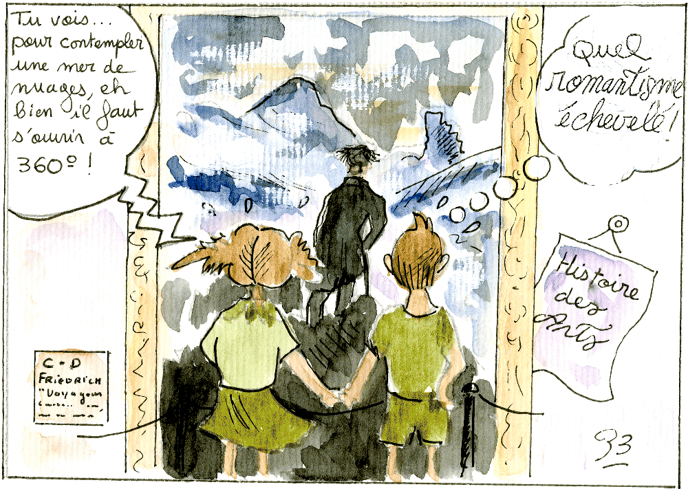 L'enseignement de l'histoire des arts est un nouvel enjeu et il faudra sans doute laisser un peu de temps aux enseignants pour qu'ils s'approprient la démarche souhaitée. Mais ce temps sera profitable si des apports viennent alimenter la réflexion ; c'est pourquoi la formation est de toute évidence une nécessité pour accompagner et réussir la mise en place de l'histoire des arts à l'école. Dès l'hiver 2009, les deux conseillers pédagogiques en éducation artistique ont proposé un stage aux professeurs titulaires première année. L'une des questions qui inquiète le plus étant : "comment associer pratiques artistiques et histoire des arts sans pénaliser l'un ou l'autre", cela a donc été l'objet de cette animation pédagogique. À partir du mot "romantisme", les stagiaires ont fait l'état de leurs connaissances, puis ils les ont mises en relation avec la définition du mot. Après une présentation des instructions officielles et de la plaquette réalisée par le rectorat, les professeurs se sont mis au travail par groupes, tous munis d'une liste d'œuvres romantiques (voir annexe) dans trois domaines, arts du visuel, arts du son et arts du langage. Lors de la mise en commun, le questionnement portait sur l'articulation entre les domaines, la pratique artistique associée, et la forme des traces à conserver. Enfin, pour terminer, les réalisations proposées dans le cadre de la journée des éditeurs ont fait l'objet d'une analyse de la démarche proposée, ainsi que du travail effectué par les élèves. Pour Bernadette Baglin, l'aspect fondamental de cet enseignement est bien de réussir à éveiller les élèves à toutes sortes de sensibilités, de les rendre curieux d'un environnement dont le sens n'est pas immédiat : "Il faut les aider à se positionner dans un comportement d'écoute, de regard posé, mais cela, sans brûler les étapes ; ouvrir leur regard à 360° pour préparer la suite...".
