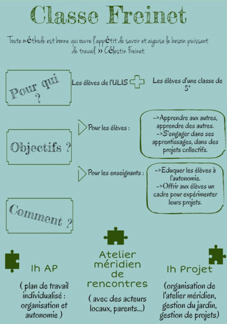 Une affiche dans la salle Freinet qui rappelle les objectifs de la Classe Freinet