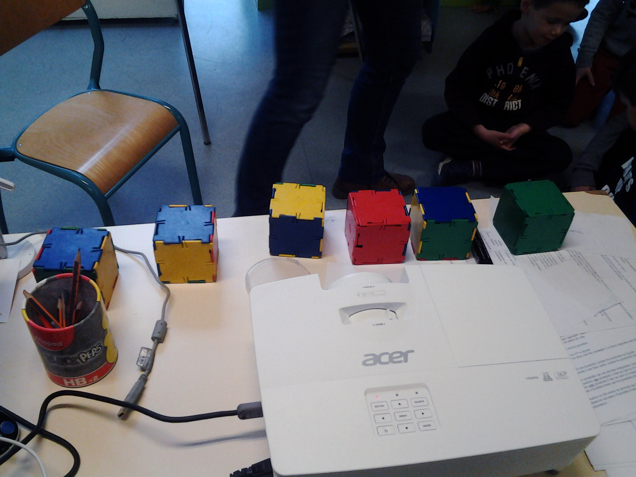 Les élèves ont souvent une mauvaise image de la géométrie. Dans ce domaine, ce qui est souvent travaillé, c’est le vocabulaire plutôt que des problèmes. Lors de la mise en place de l’unité de cycle, un partenariat avec une chercheuse en mathématiques Magali Hersant a été mis en place. Avec son expertise, il est réalisé trois séances sur le même thème (le cube) mais avec des niveaux différents. Le BO (spécial n° 11 du 26 novembre 2015) stipule que les élèves dès le CP doivent résoudre des problèmes mathématiquement qui leur permettront de développer leurs capacités.
