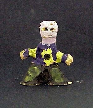 Les élèves ont modelé à l'argile des figurines représentant les personnages du conte. Ce travail a été conduit sur trois séances (dessin, modelage, séchage, couleurs...). Les travaux ont été pris en photo et celles-ci ont été insérées dans le livret.