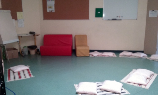 La salle La salle choisie pour accueillir les classes Freinet est une annexe de la classe de l’Ulis. Elle sert habituellement de salle de classe et n’est donc pas toujours configurée pour le projet. Lors des premières séances du projet, la salle volontairement est vidée de tout contenu, les élèves travaillent ensemble à son aménagement. Les élèves ont fait des croquis, des plans d’aménagement, ils ont consulté des catalogues de mobilier scolaire. Ils ont chiné du mobilier auprès des autres établissements de la région. Ils ont pour cela adressé une lettre à la gestionnaire du collège qui a envoyé un mail à ses collègues : un établissement a répondu favorablement à leur demande. Ils ont aussi sollicité le foyer du collège pour un financement pour l’achat de coussins.