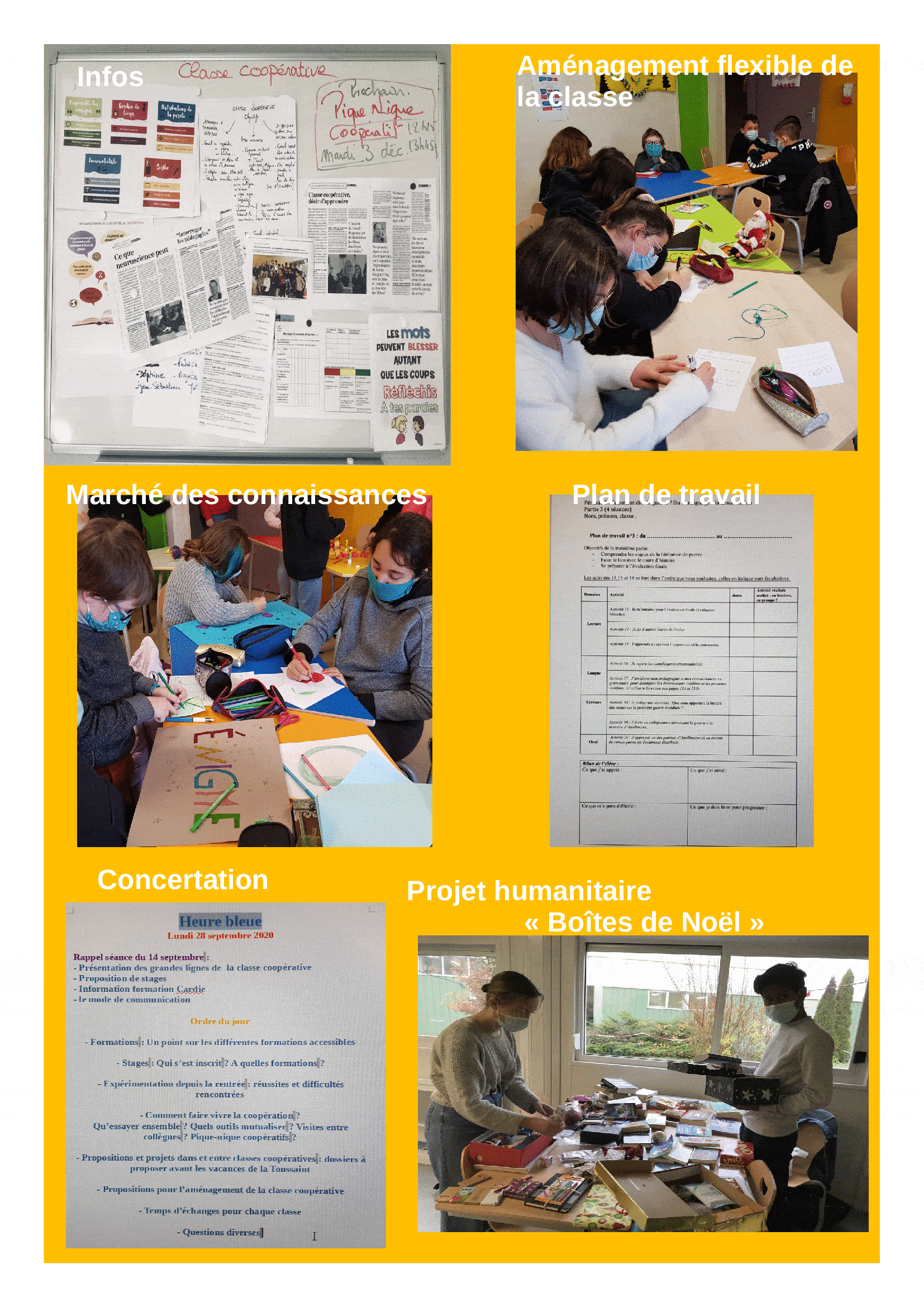 o Un tableau en salle des professeurs est dédié aux informations concernant les classes coopératives.