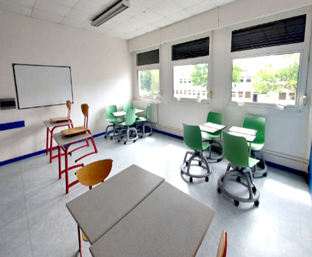 Achat et utilisation du mobilier à roulettes, des casques anti-bruits, des gros ballons. Récupération d’ordinateurs portables (mais pas de connexion Wifi possible).