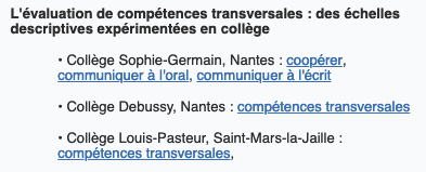 Des exemples d’échelles descriptives utilisées dans des collèges de la région Pays de la Loire :