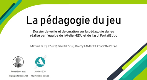 | La pédagogie du jeu Dossier de veille et de curation sur la pédagogie du jeu réalisé par l’équipe de l’Atelier-EDU et de l’asbl PortailEduc. La place du jeu dans l’enseignement et au sein des apprentissages est un dispositif qui interroge, fascine ou inquiète selon les personnes et les époques. Force est pourtant de constater que le jeu, sous toutes ses formes, prend place dans la classe. Qu’il s’agisse d’un jeu de plateau, d’un jeu vidéo ou d’un escape game, le jeu a pris sa place, peu ou prou, au sein des enseignements, de la maternelle à la formation professionnelle en passant par l’université. | |