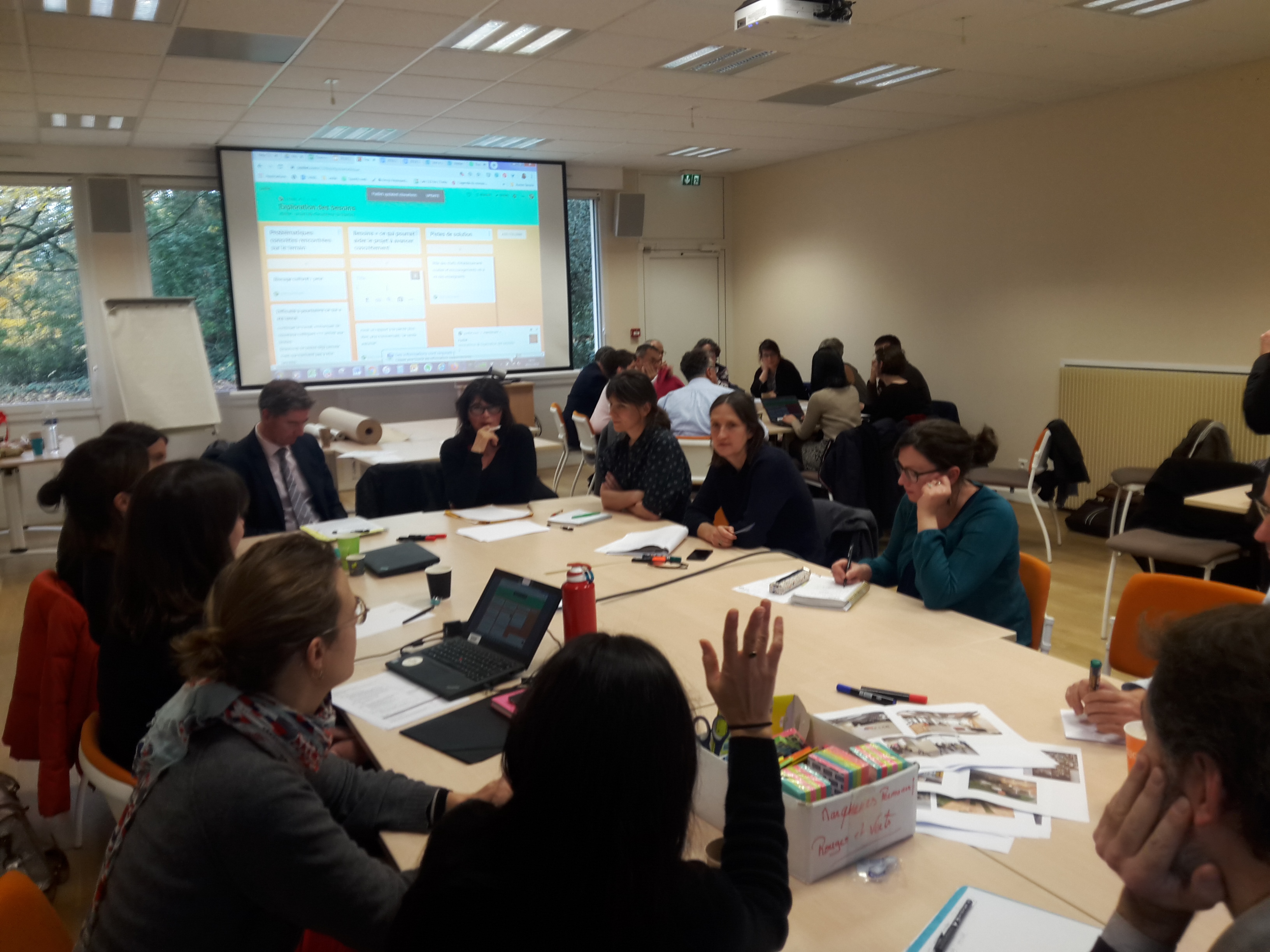 - d’associer, dans le cadre d’ateliers, des usagers potentiels à la réflexion collective (enseignants, formateurs, chefs d’établissement, responsables de services administratifs...) pour identifier les besoins, ce que l’on souhaite ou pas, ce que pourrait être l’offre de service, la mise en œuvre de nouvelles méthode de travail ;