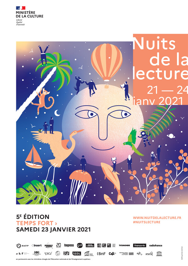 Les Nuits de la lecture promeuvent le livre et la lecture auprès de tous les publics. Leur 5e édition est organisée en janvier 2021 sur le thème "Relire le monde".