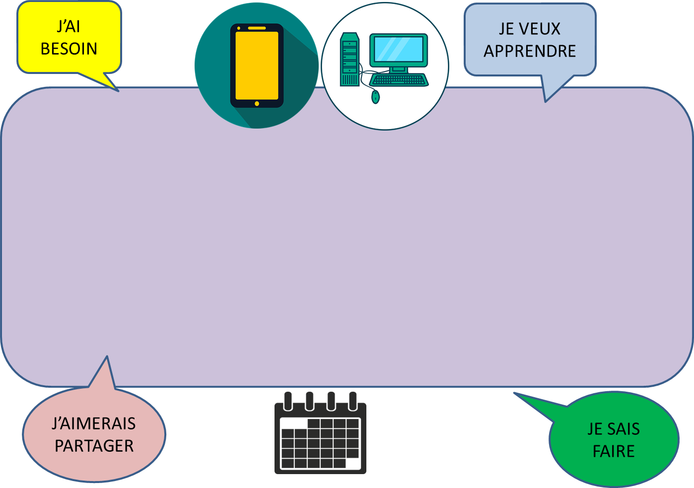 - un calendrier des différentes actions (formation ciblée, entraide, événements festifs, créatifs autour du numérique …) ;
