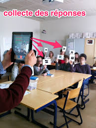 L'application Plickers peut aider à mettre en place ces différentes modalités d'évaluation. L'enseignant réalise un quizz en amont de sa séance et interroge ses élèves. Ceux-ci répondent à l'aide d'un QR-code. Le traitement des réponses se fait en direct et peut être projeté immédiatement via un vidéo-projecteur.