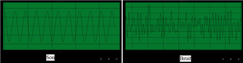 - Expliquer aux élèves de manière introductive la différence entre un son et un bruit (ci-dessous, capture avec Spectrum Analyzer)