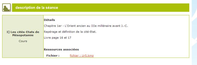 On associe un fichier numérique utilisé en classe. La trace écrite s'enrichit d'un document qui n'aurait pas sa place en version papier (fichier vidéo, fichier kmz). Des liens Internet permettent aux élèves d'enrichir le cours.