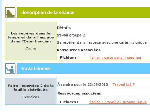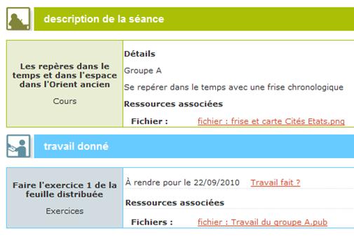 A noter que les documents produits par les élèves trouveront leur place dans l'ENT (espace partagé ou bien documents personnels) plutôt que dans le cahier de textes, qui relève de la responsabilité de l'enseignant.