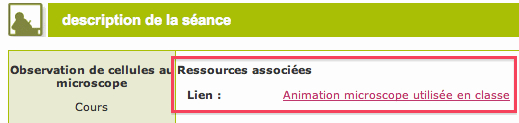 2/ Visualisation de la séance avec le lien pour l'élève. Il suffit à l'élève de cliquer sur ce lien.