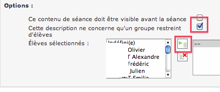 Le cahier de textes e-lyco répond parfaitement à cette attente puisqu'une personnalisation du contenu des séances et/ou du travail à faire est possible. Le choix se fait très précisément parmi les élèves de la classe.