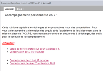Tout au long de l'année, cette rubrique reste identifiée comme le point central d'information sur l'AP ; élèves et enseignants y retrouvent toutes les actualités sur l'aide personnalisée et son organisation dans le lycée. Elle permet également de garder l'historique des différentes périodes.