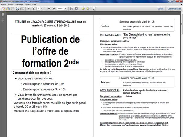 Au lycée David d'Angers, l'accompagnement personnalisé (ACCPE) fonctionne sur le principe d'ateliers articulés en périodes de 7 à 8 séances. Les séances d'ACCPE sont constituées en barrettes de divisions :