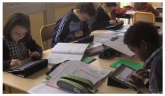 Des élèves en situation d'utilisation de tablettes tactiles.
