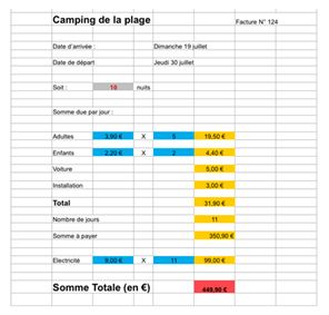 - Algébriser la résolution des problèmes, aider au raisonnement : L'algébrisation de la résolution du problème passe par une mise en équation de la démarche mathématique permettant de trouver le résultat attendu. Grâce à l'insertion de formules très simples (somme, produit...), l'élève décrit son raisonnement mathématique. Les formules sont traitées non pas à partir des valeurs numériques mais à partir des références des cellules dans lesquelles elles se trouvent. Ainsi tout changement de valeur n'aura aucune incidence sur le protocole de résolution établi.