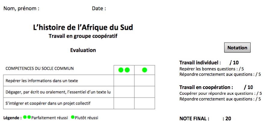 Une fois qu'ils ont répondu aux questions, ils rendent à l'enseignant le document.