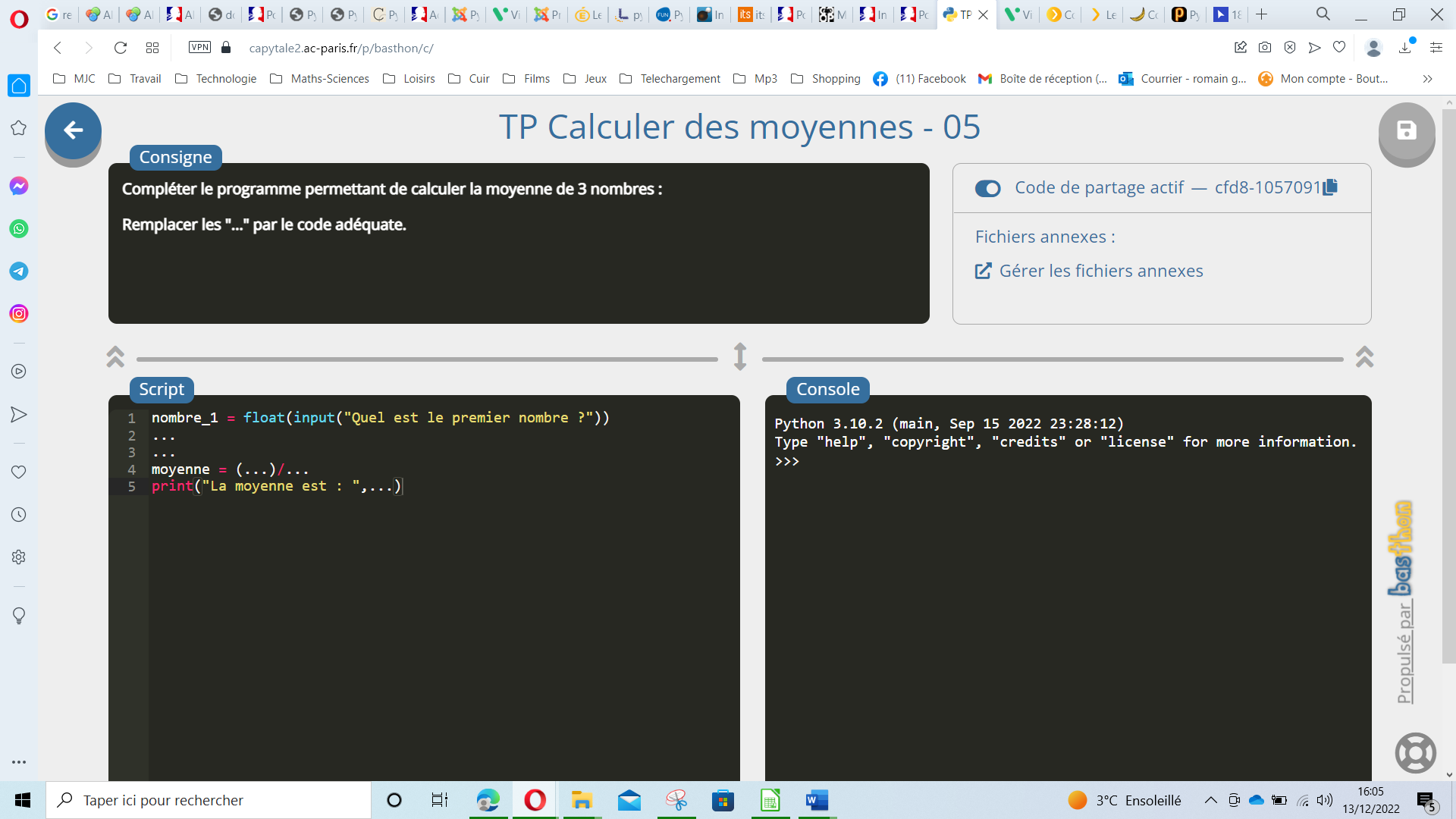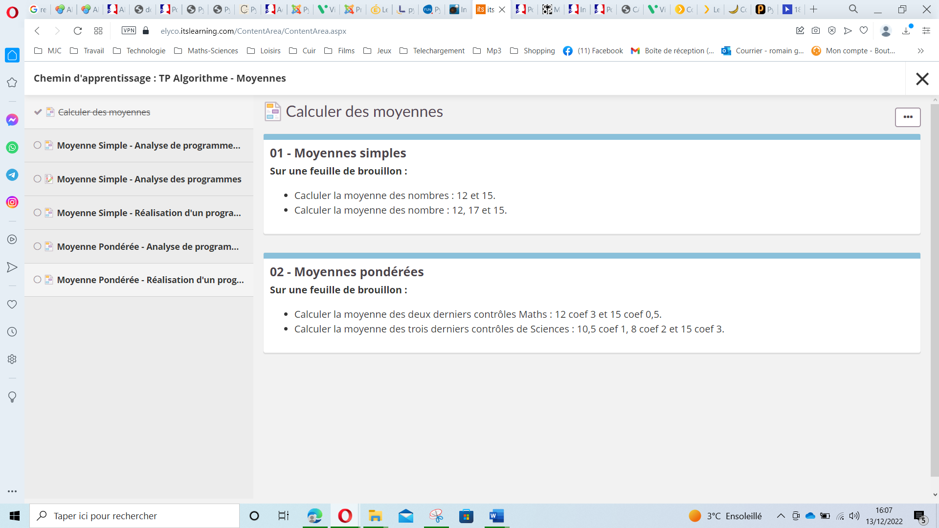 Réaliser un programme en Python afin de vérifier votre moyenne générale en prenant en compte toutes les disciplines. Et enfin, réaliser un programme permettant de calculer la moyenne de l'examen avec les coefficients.