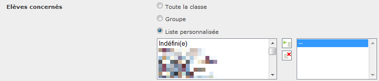 Qu’il s’agisse d’un contenu de séance, ou bien d’un travail à faire à l’issue d’une séance, il est possible de définir les élèves concernés, et donc de différencier le contenu proposé :