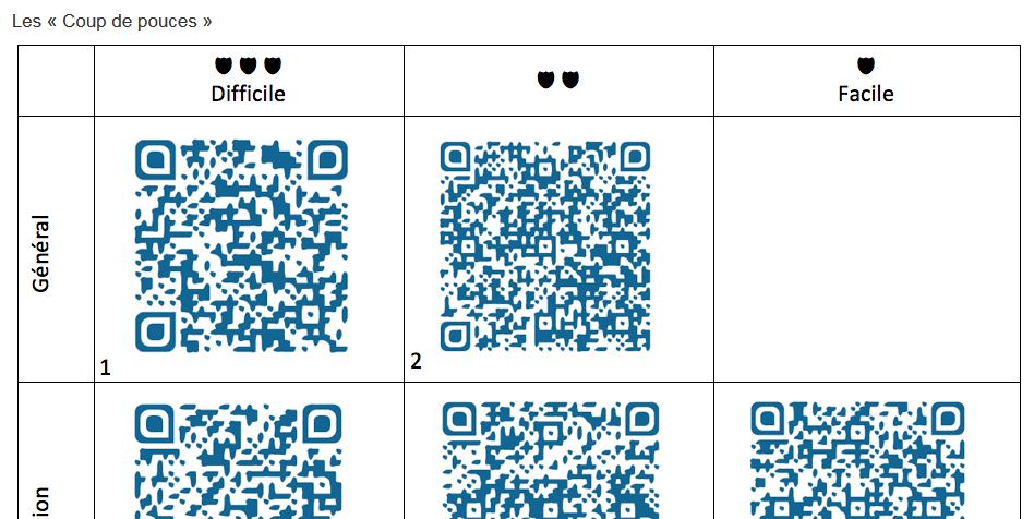 Une aide peut être apportée aux élèves en insérant des codes QR dans une fiche d’activités comme ici :